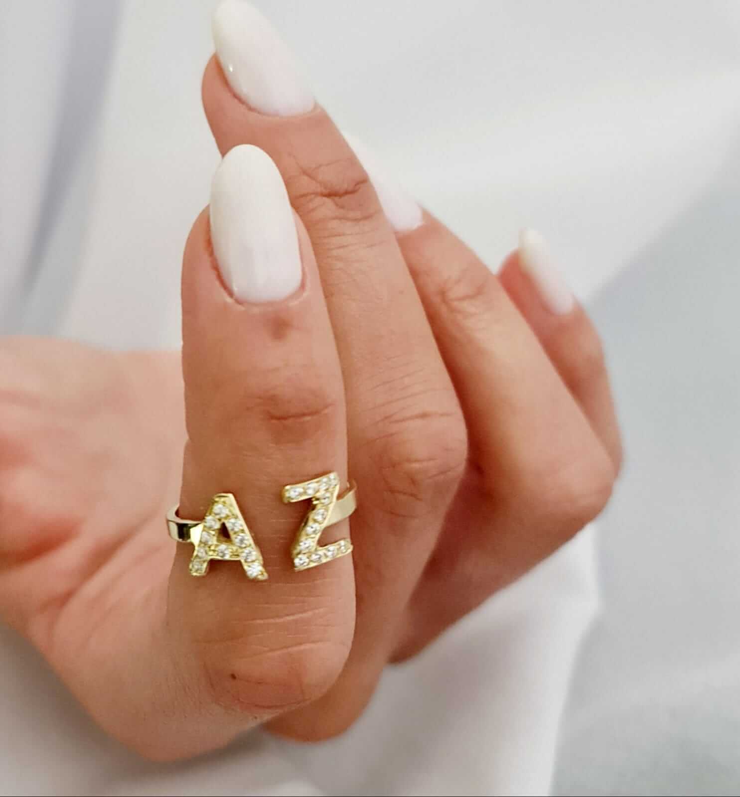 טבעת ראשי תיבות משובצת, מזהב 14K.